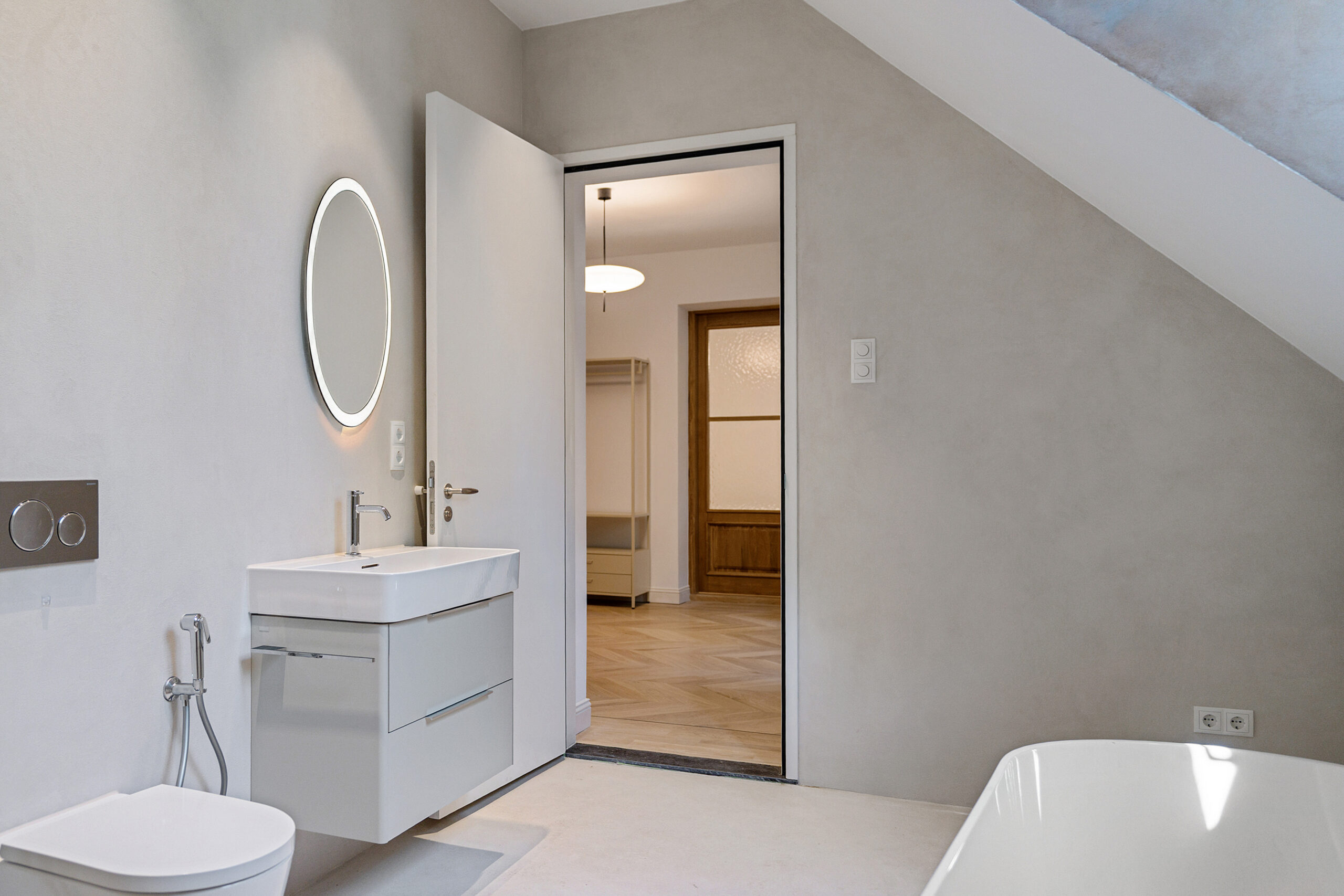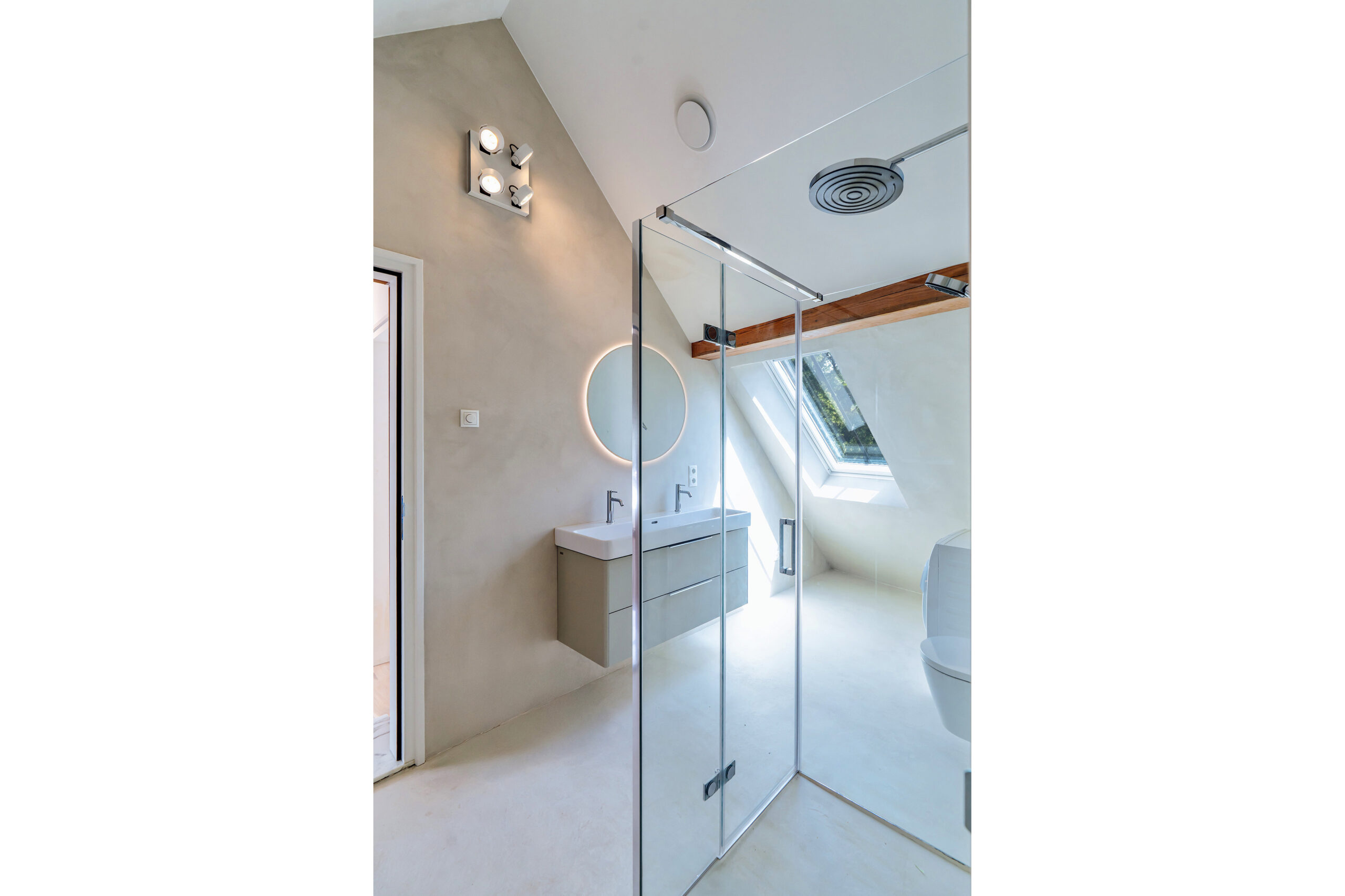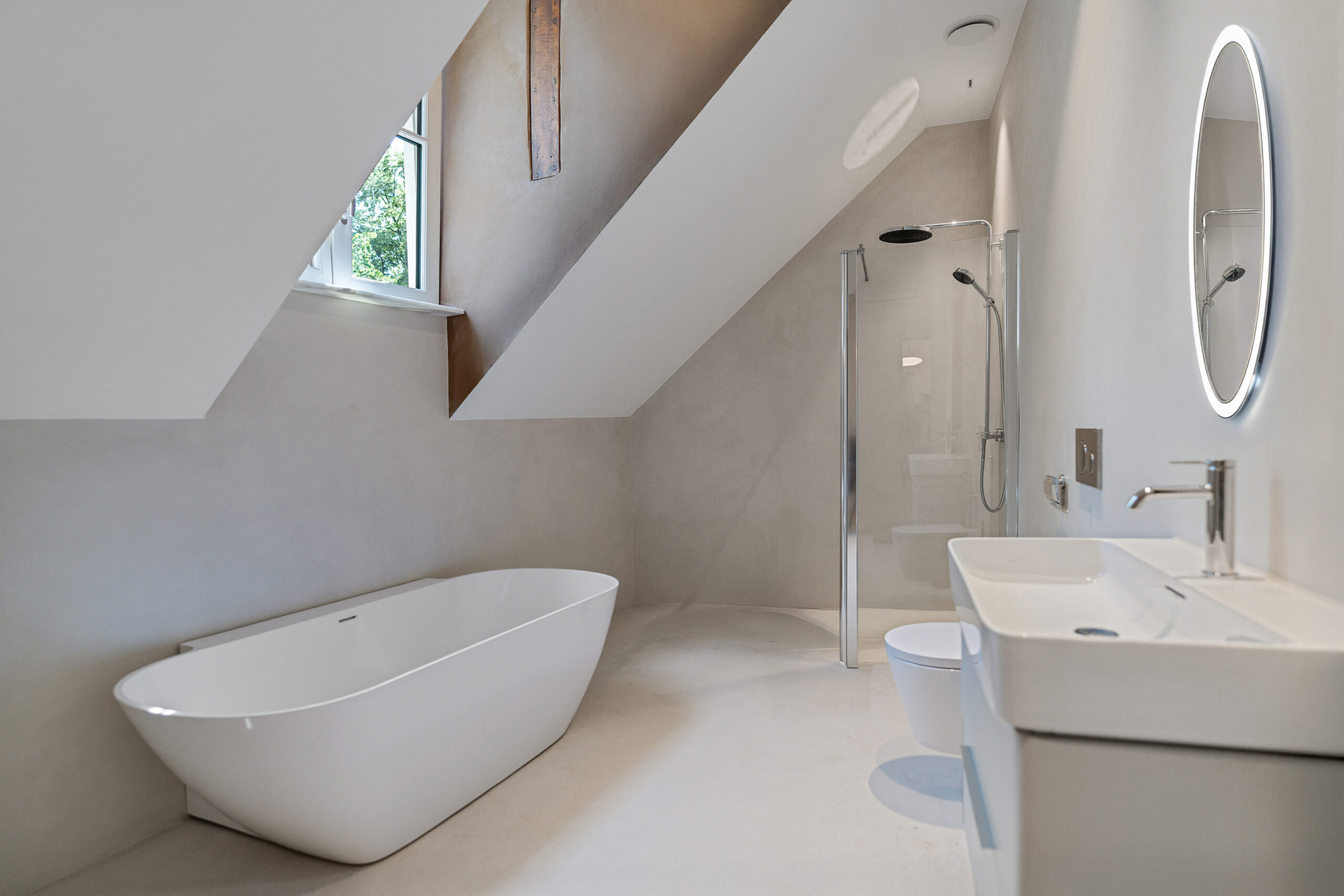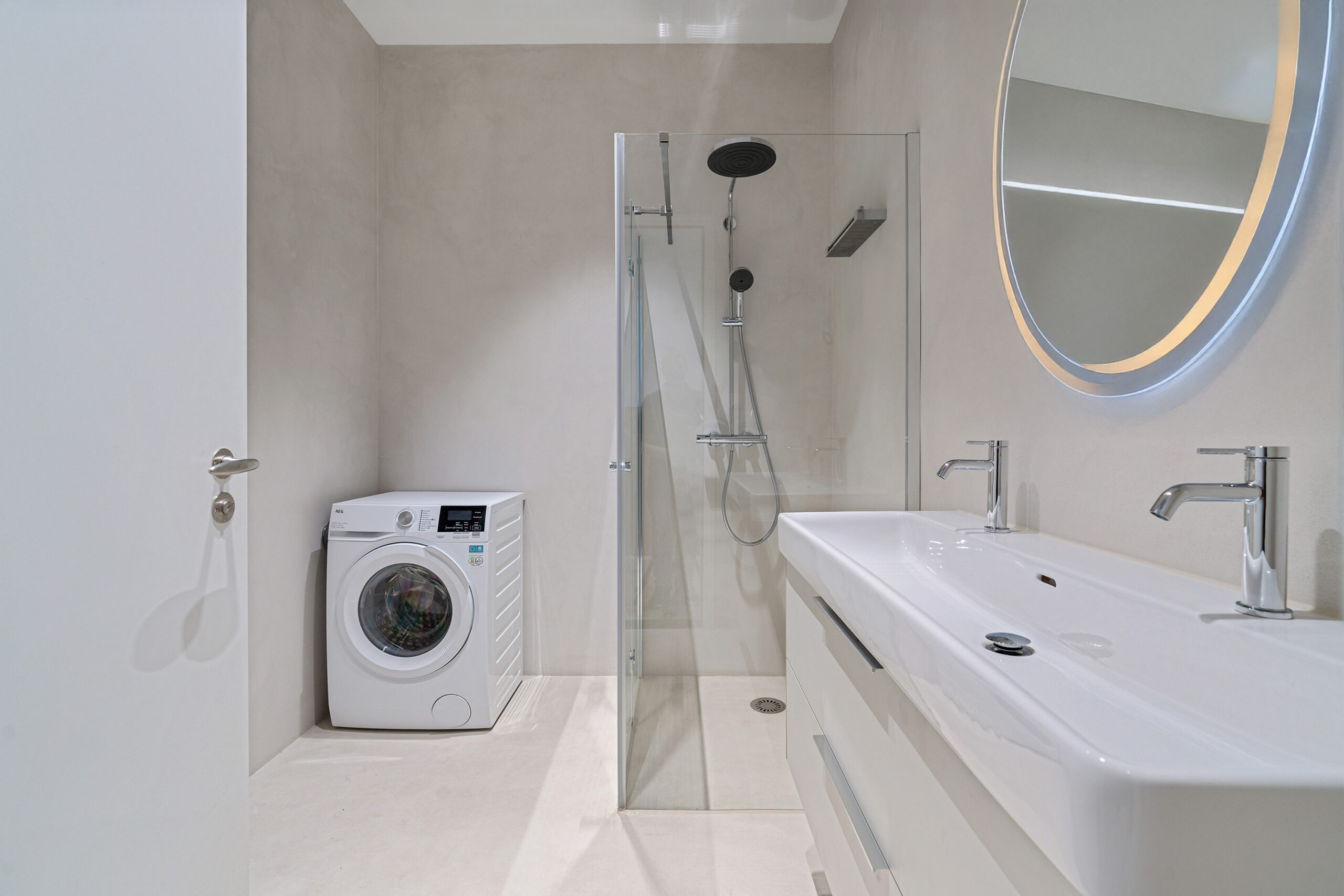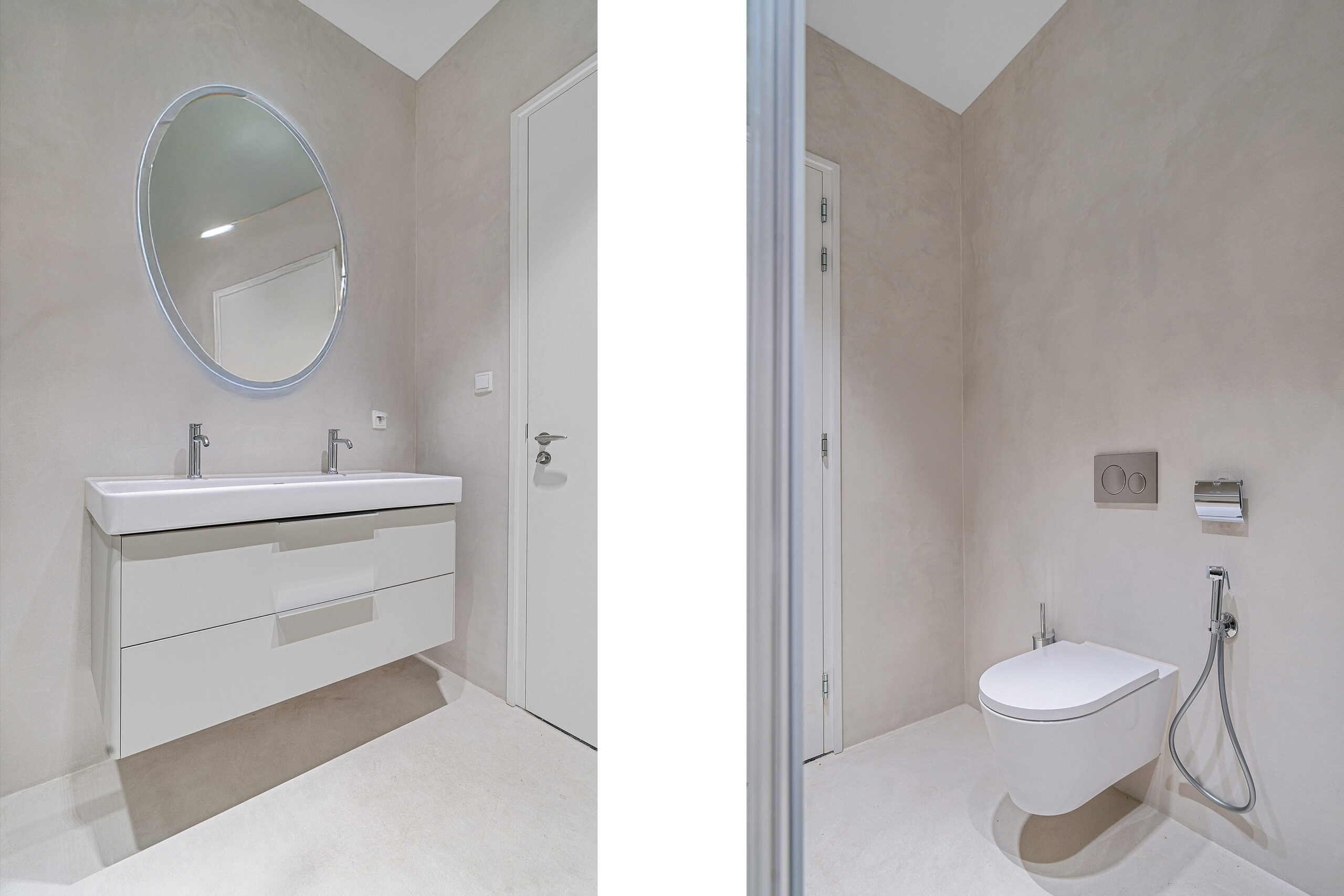 Construction of completely new bathrooms using marble and microcement for a sleek finish